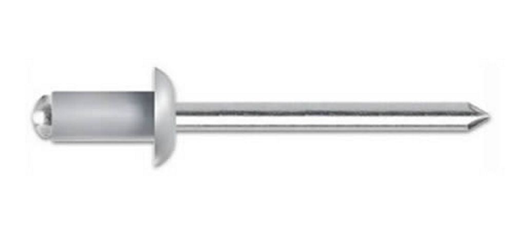 Confezione 100 Pezzi Rivetti Rivetto a strappo ad estremità aperta in alluminio (Mg 5%), testa bombata, con mandrino (chiodo) in acciaio zincato - Diametro 6 mm