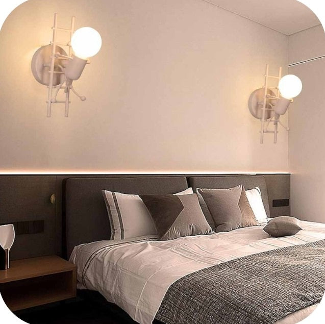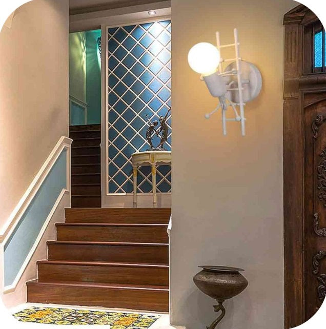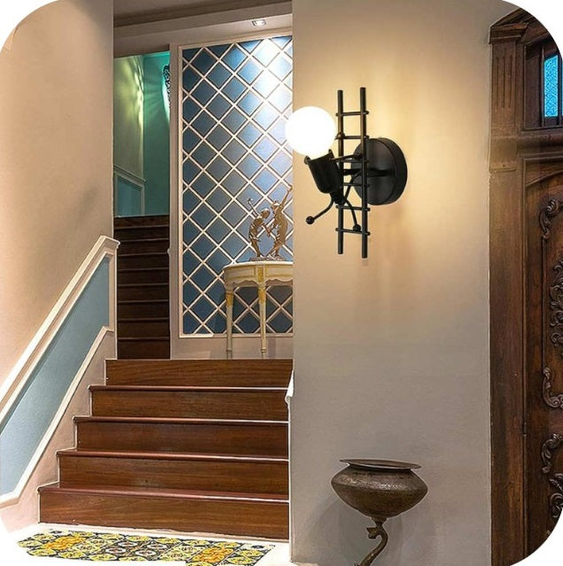 Applique da parete Lampada Decorativa Metallo attacco E27 Omino su scala