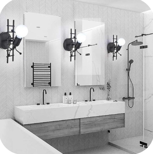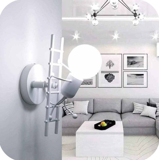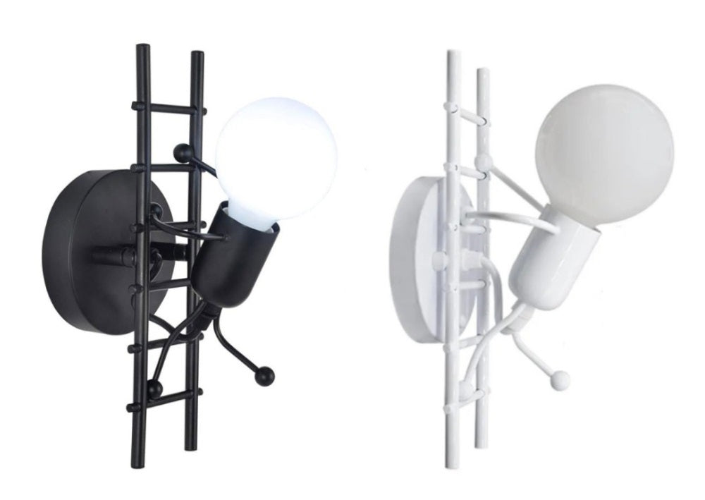 Applique Lampada da parete decorativa Metallo attacco Lampadina E27 Omino su scala colore Bianco o Nero