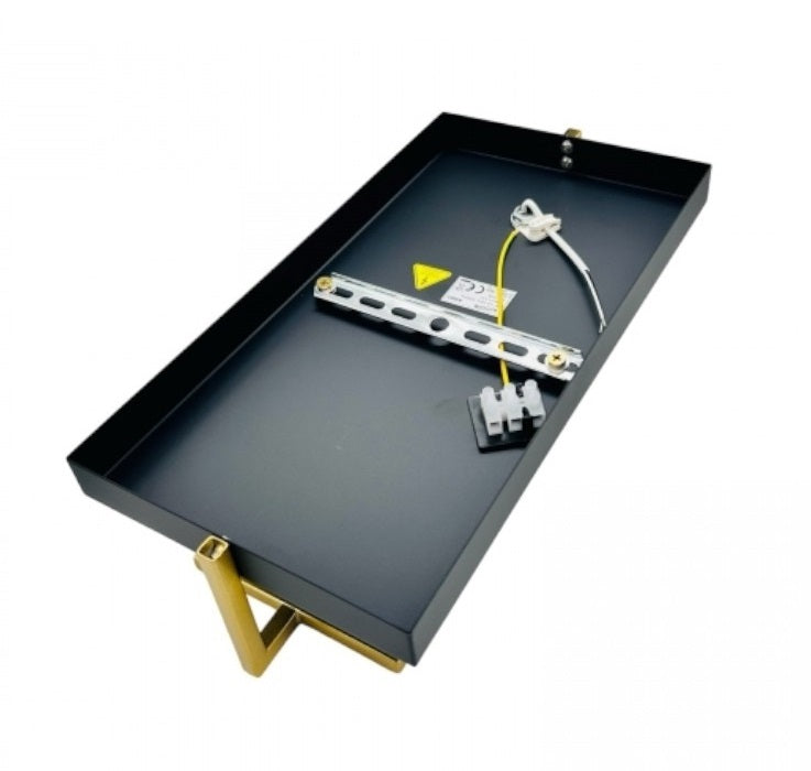 Realizzato interamente in metallo con base nera e con rifiniture e portalampada di colore bronzo.