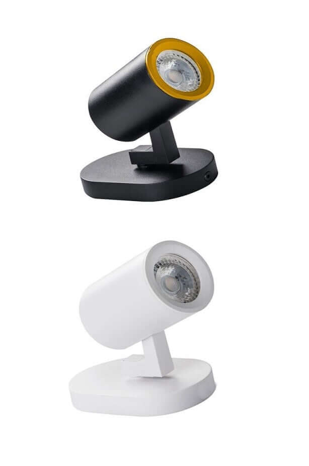 Forma elegante e moderna è realizzata in lega di alluminio di colore: bianco, nero/oro, e dispone di 1 testa orientabile per direzionare la luce in base al tipo di illuminazione desiderata.