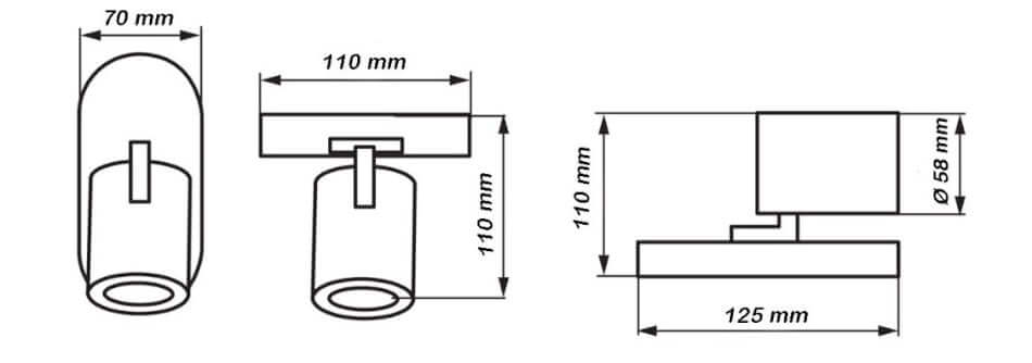 Dimensioni faretto: 11x5.8 cm
