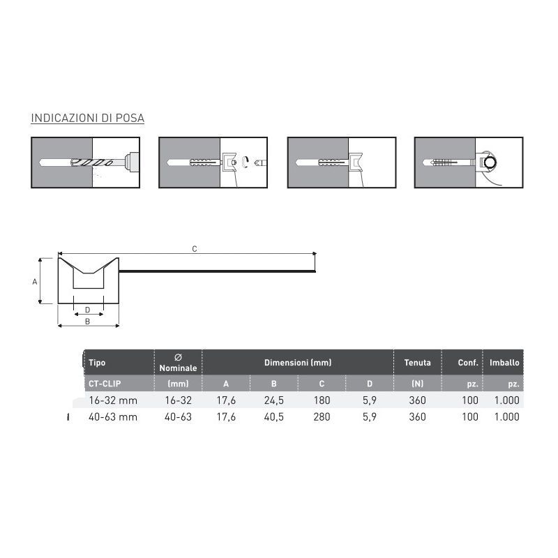 Confezione 100 pezzi Clip Fascetta Fissatubo Base 16 A 32mm Per Fissaggio Tubi Protettivi Rigidi Plastica Metallo raccordi