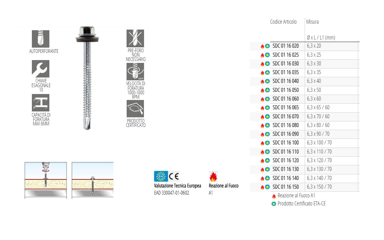 Per il fissaggio di lamiere grecate (anche coibentate) ed ondulate, su supporti metallici; non necessita di preforo; garantisce un’elevata riduzione nei tempi di montaggio e nella manodopera impiegata, anche grazie alla testa preverniciata, che assicura, inoltre, una migliore resa del lavoro effettuato in termini di immagini.