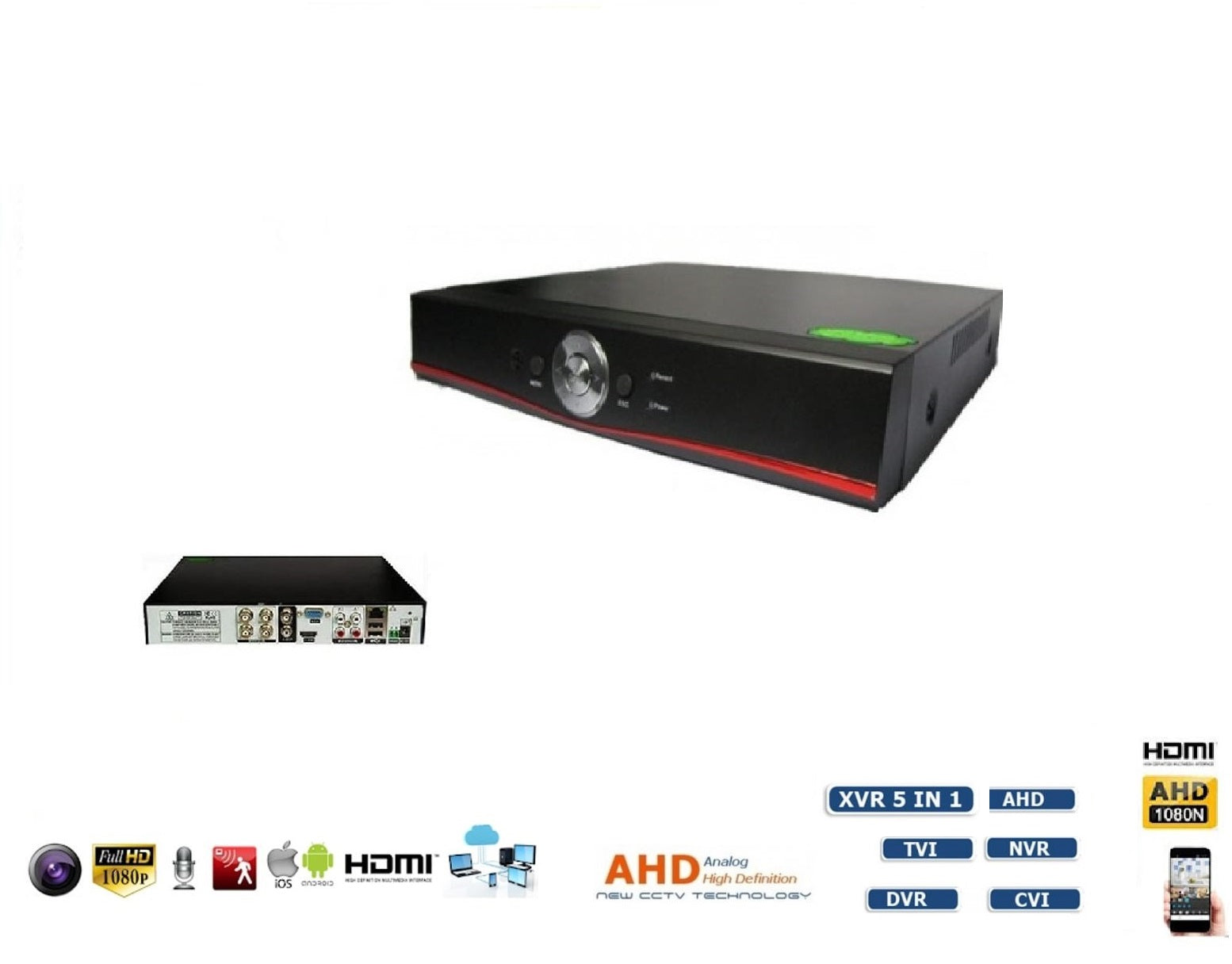 XVR 5in1 AHD/CVI/TVI/CVBS/IP 4Ch da ben 2 Megapixel in live su tutti e disponibile per 4/8/16 canali.