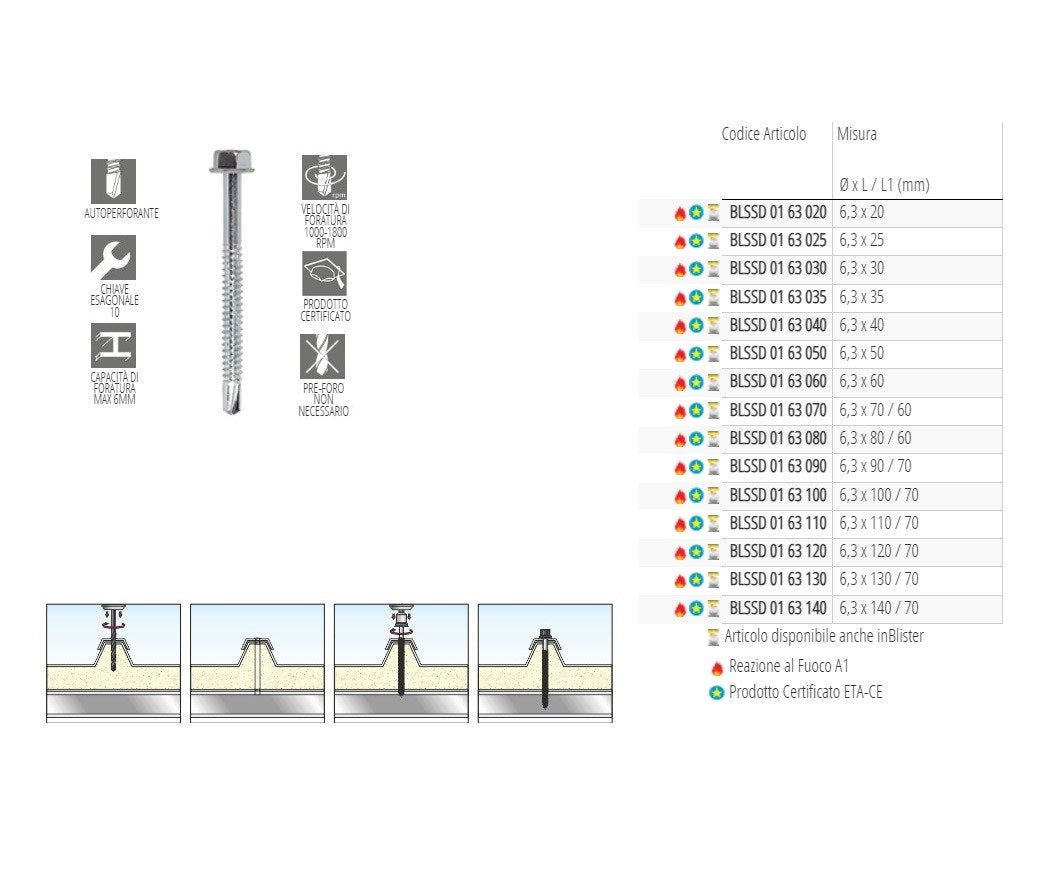 Vite Testa Esagonale con falsa Rondella Autoperforante Zincata